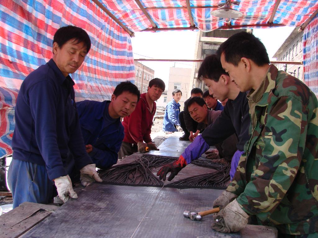 為保質保量完成任務,該礦成立工程領導小組,抽調(diào)骨干人員深入現(xiàn)場,分析研究,制定施工組織方案;細化工程分工,明確工程進度,嚴格工序要求,加大現(xiàn)場管理。施工現(xiàn)場,各業(yè)務科室協(xié)同作戰(zhàn),作業(yè)現(xiàn)場井然有序,扒接頭、打毛、拋光、擰螺緊栓每一個環(huán)節(jié)都有技術員跟班指導,做到一絲不茍,確保膠帶接頭嚴絲合縫。主井膠帶通行的中心線兩側,4臺牽引絞車固定完畢,其余絞車正在加緊固定。目前,各項前期工作正在井然有序的進行,為確保高質量、高標準完成任務奠定基礎。 (圖分別為工人固定牽引絞車;為膠帶進行續(xù)接現(xiàn)場。)