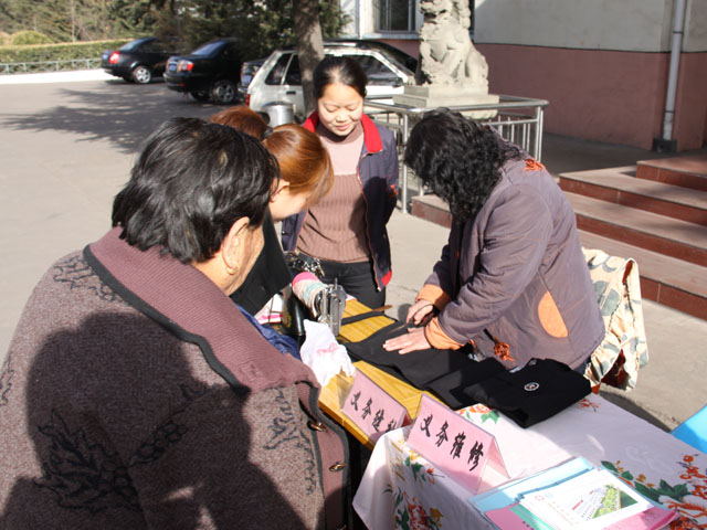 此次活動(dòng)是該公司團(tuán)委繼開辦學(xué)雷鋒茶水站后,本著為員工群眾辦實(shí)事、辦好事的想法,結(jié)合公司實(shí)際,組織開展的一項(xiàng)便民活動(dòng)。活動(dòng)的內(nèi)容主要有義診、義務(wù)縫補(bǔ)衣物、安全法規(guī)宣傳、社保政策宣傳、義務(wù)維修等,走進(jìn)活動(dòng)現(xiàn)場(chǎng),就看到一些老年人在量血壓、員工在咨詢有關(guān)社保政策、志愿者在發(fā)放安全宣傳單,一片熱鬧景象。一位老大爺高興地說:“希望以后能辦一些這種便民活動(dòng),讓雷鋒精神永駐礦山。” 圖1為志愿者為老年人測(cè)量血壓;圖2為志愿者為員工縫補(bǔ)衣物。