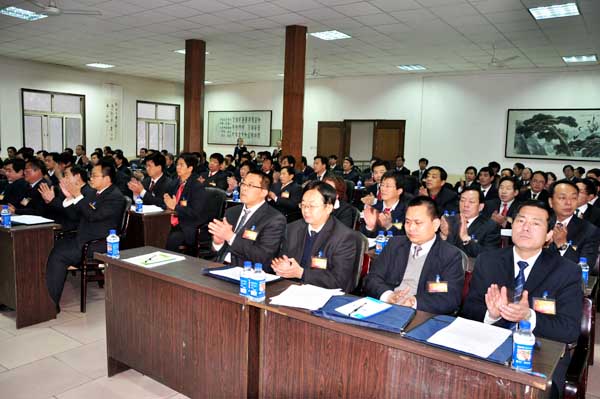 該礦黨委書記李新中作了題為《解放思想 更新觀念 為建設(shè)文明富裕和諧美麗新礦區(qū)而不懈奮斗》的黨委工作報(bào)告?;仡欉^去8年工作,有六大標(biāo)志:安全穩(wěn)定和諧礦區(qū)建設(shè)越來越好,今年實(shí)現(xiàn)“雙零”目標(biāo)勝券在握;采掘生產(chǎn)水平不斷提高,累計(jì)生產(chǎn)原煤901.6萬噸,掘進(jìn)進(jìn)尺7.3萬米。今年預(yù)計(jì)產(chǎn)煤115.6萬噸,進(jìn)尺7881米,創(chuàng)歷史最高;黨建質(zhì)量管理體系得到加強(qiáng),ISO9000質(zhì)量認(rèn)證體系全面應(yīng)用;基礎(chǔ)建設(shè)更加牢固,采煤機(jī)械化水平達(dá)100%,掘進(jìn)機(jī)械化達(dá)67%,主要設(shè)備和重點(diǎn)項(xiàng)目改造基本完成;職工生活水平顯著提高,年人均收入由1.4萬元增至8.8萬元,翻6.4倍;企業(yè)文化建設(shè)亮點(diǎn)紛呈,地面園林化漸成規(guī)模,安居工程打造了“粉紅礦井”主體,全礦幸福指數(shù)大幅升級(jí)。主要抓好了六個(gè)方面的工作:重視理論武裝,思想建設(shè)成效顯著;夯實(shí)組織基礎(chǔ),黨的建設(shè)全面加強(qiáng);強(qiáng)化廉政建設(shè),干部作風(fēng)得以轉(zhuǎn)變;關(guān)注民心工程,推進(jìn)和諧礦區(qū)建設(shè);推動(dòng)企業(yè)文化,引領(lǐng)礦井科學(xué)發(fā)展;做好群團(tuán)工作,提升民主管理水平。并確定了今后5年的指導(dǎo)思想、奮斗目標(biāo)和工作任務(wù)。決心深入學(xué)習(xí)、貫徹十八大精神,充分發(fā)揮黨委職能,鞏固安全、穩(wěn)定“雙零”目標(biāo),杜絕重傷以上事故,原煤產(chǎn)銷量500萬噸以上,建成全國(guó)瓦斯治理示范礦井、全國(guó)企業(yè)文化示范礦、集團(tuán)公司安全生產(chǎn)精細(xì)化示范礦井,完成礦業(yè)公司下達(dá)的各項(xiàng)目標(biāo)任務(wù),職工收入穩(wěn)步增長(zhǎng),躋身國(guó)家安全質(zhì)量標(biāo)準(zhǔn)化礦井行列,圍繞礦井安全、生產(chǎn)等中心工作中,切切實(shí)實(shí)提升黨建科學(xué)化水平。