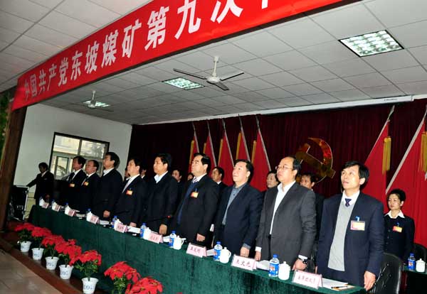 12月20日,中共東坡煤礦第九次代表大會(huì)在《國(guó)歌》聲中隆重召開。公司黨委副書記、工會(huì)主席劉啟科,公司組織部部長(zhǎng)王志鋒,公司紀(jì)委副書記王發(fā)明,高樓河鄉(xiāng)黨委書記王文元、該礦領(lǐng)導(dǎo)班子成員、2名特邀老領(lǐng)導(dǎo)、80名黨員代表及21名列席代表出席了會(huì)議。
