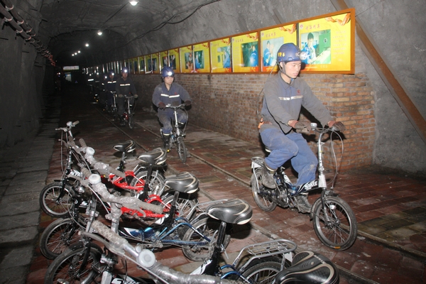 近日,下石節(jié)煤礦千米井下出現(xiàn)了職工騎自行車代步的新景觀。一線礦工乘坐人車進入2301車場后,不再像從前那樣徒步進入工作面,而是憑信息登記到車房領取自行車,然后在千米井下每天騎自行車上下班,從而大大節(jié)省了體力,深受一線職工歡迎。