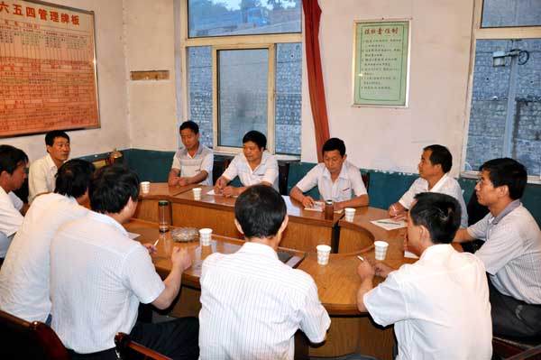 “多一份守望,就多一份安全。多一份安全,更要加一份守望?!?011年11月,東坡礦實施每晚7點30分安全生產(chǎn)分析會制度。