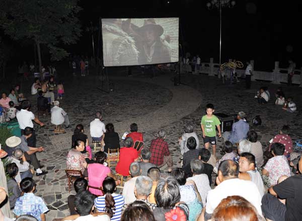 7月23日晚,東坡礦的人們?nèi)宄扇?,散坐于住戶小區(qū)廣場(chǎng)觀看電影,中、老年夫妻聚坐一團(tuán),河水汩汩,清風(fēng)掠膚,影片《非常任務(wù)》在空闊中異常清晰,家屬李巖挽著老公的胳膊,看著夜幕中的星星,幸福的笑容蕩漾了臉龐。一對(duì)老夫妻悄悄絮語(yǔ):“原來(lái)咱一起看電影……呵呵……”據(jù)悉,這一活動(dòng),持續(xù)一周,每天1部新片,還將陸續(xù)放映《千里追蹤》、《九月殺》等紅色影片。納涼的人們笑著說(shuō):“很期待!”
