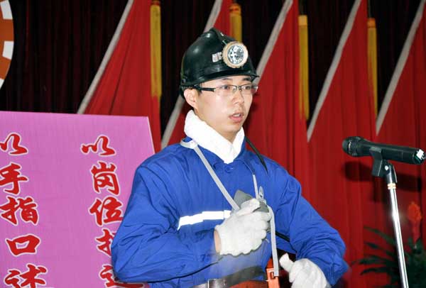 “設(shè)備完好,支護可靠,周圍無人,確認(rèn)完畢,可以開機?!比涨?,在東坡煤礦五樓會議“雙述”演示競賽現(xiàn)場, 來自全礦14個單位的競賽選手齊聚一堂,激烈對決,掘四隊職工黃小平等3人用自己精彩表現(xiàn)奪得了 競賽前三名,各贏得獎金1000元。