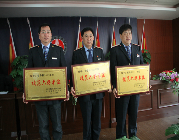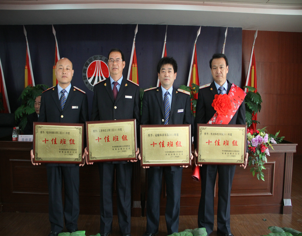 這次受到表彰的模范六好單位3個、科級先進集體5個、十佳班組5個、明星班組9個、優(yōu)秀機車組4個、文明車站3個、優(yōu)質工區(qū)5個、明星員工5名、優(yōu)秀班組長7名、先進個人57名、學習型家庭2個、道德模范6名、“雙述”大賽獲獎者6名。
