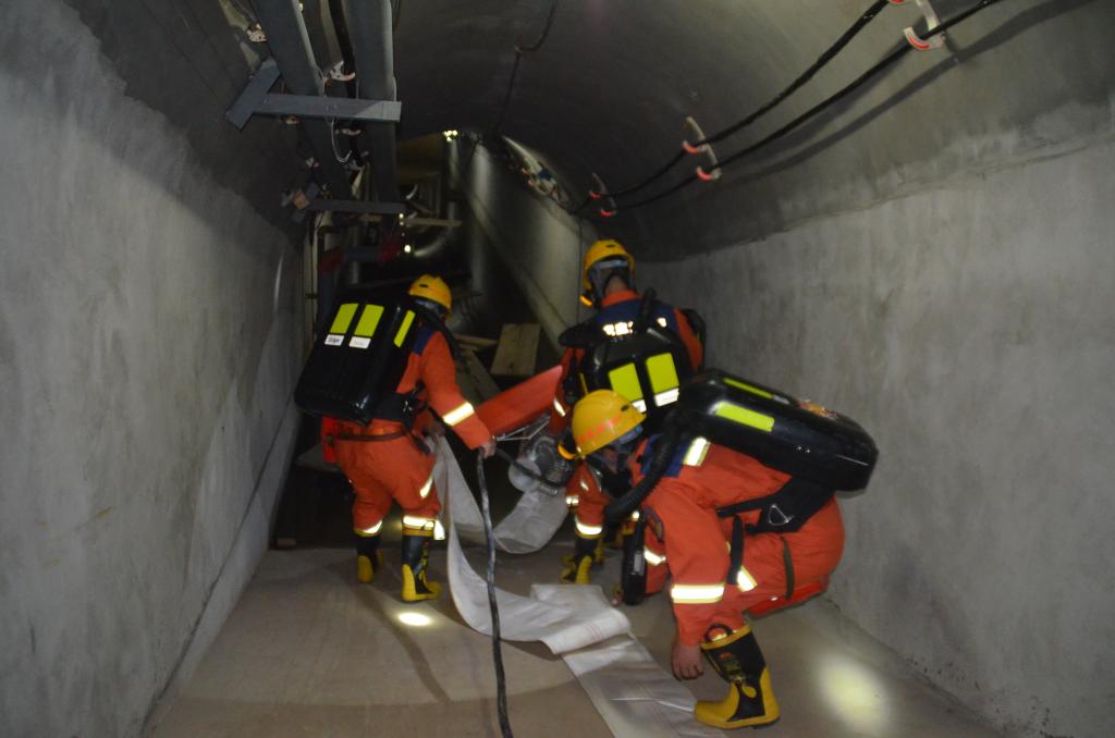 到達(dá)事故地點(diǎn)后,現(xiàn)場(chǎng)指揮部快速說(shuō)明險(xiǎn)情,下達(dá)救援指令,各救援小組立即展開(kāi)救援。搶險(xiǎn)救災(zāi)組利用最短時(shí)間在井口堆砌防洪沙袋,確保井口安全,同時(shí)快速搜尋井下被困人員。裝備保障組安裝水泵、鋪設(shè)水管、現(xiàn)場(chǎng)排水。