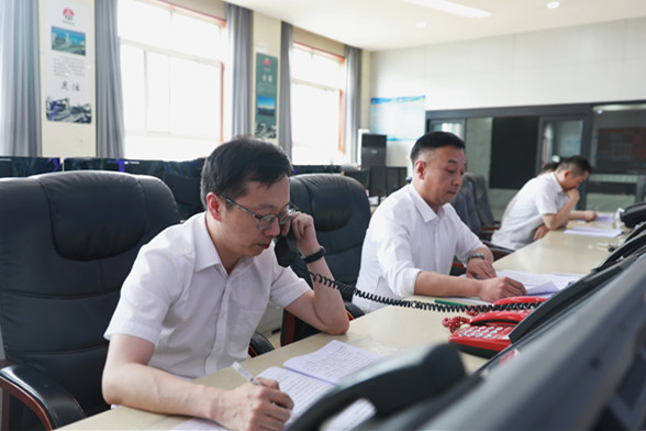 走進調(diào)度指揮中心,這里和往常一樣忙碌。調(diào)度員目光聚焦于監(jiān)控屏幕,密切關(guān)注監(jiān)測監(jiān)控系統(tǒng)設(shè)備運行情況。礦井汛期“三防”小組召集成員,在圖紙前分析制定節(jié)日期間巡查路線和排查任務(wù)清單,布置應(yīng)急值班值守崗位督導(dǎo)檢查行動。連日來,礦區(qū)迎來降雨天氣,做好設(shè)備防雷電裝置檢測,加強重點區(qū)域、關(guān)鍵部位監(jiān)測和防汛物資管理、應(yīng)急隊伍訓(xùn)練,各項工作和預(yù)案措施落實到位。