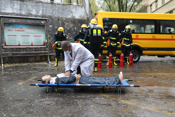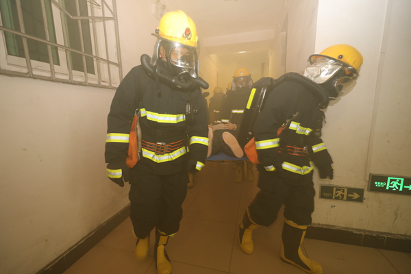 隨著橙色煙霧升起,模擬火場逃生演練正式啟動。參演人員嚴格遵循預定疏散路線,用濕毛巾捂住口鼻,低姿、快速、有序地從單身樓撤離。演練還設置了“傷員救援”情景,專業(yè)人員現(xiàn)場演示了擔架轉運與基礎急救流程,進一步增強了大家在突發(fā)事件中的協(xié)作與救助能力。整個演練過程組織有序、貼近實戰(zhàn),既是一堂生動的安全教育課,也是落實安全生產責任的生動實踐。