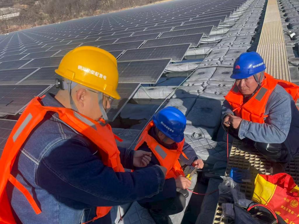 電管站的運維現(xiàn)場更是一派繁忙景象。在水上光伏陣列間,作業(yè)人員踩著浮體支架在組件間隙穿梭,手持紅外線成像儀對光伏組件、逆變器等關(guān)鍵設(shè)備進行精準檢測,同時細致清理組件表面積塵,對發(fā)現(xiàn)的接線松動問題當場消缺;山地光伏區(qū)域,運維人員踩著碎石路,重點檢查并緊固支架螺絲,優(yōu)化電站監(jiān)控預(yù)警閾值,確保每一塊光伏板都能高效穩(wěn)定發(fā)電?!皠e人的年貨是雞鴨魚肉、瓜果糖茶,我們的‘年貨’就是這張‘零隱患清單’。清單上多劃掉一個隱患,群眾過年的燈火就多一分明亮。”現(xiàn)場負責(zé)人擦了擦額頭的汗珠,話語里滿是堅定。