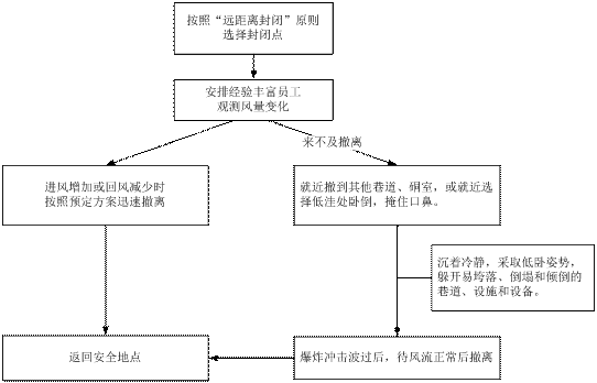 圖2 煤礦火災(zāi)期間發(fā)生瓦斯爆炸避災(zāi)措施程序簡(jiǎn)圖