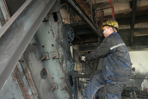 2月28日上午11時,玉華煤礦地面篩選系統(tǒng)突然停機,跟班干部立即將這一情況上報并積極組織技術(shù)人員檢查檢修。經(jīng)觀察,位于該礦排矸車間四樓的斗式提升機上部驅(qū)動軸鏈板發(fā)生脫離,影響正常運轉(zhuǎn)。確認故障后,搶修人員各有分工緊急展開行動,將提升機水槽儲水全部放空,抓緊時間用心拆解,經(jīng)過周密仔細檢查,發(fā)現(xiàn)設(shè)備由于負荷較大,導(dǎo)致該設(shè)備內(nèi)部一處鏈板已經(jīng)拉斷,損壞嚴重,必須立即進行維修處理。由于設(shè)備下部在水中運行,水槽內(nèi)壁掛滿污泥,而且空間狹小,只能容下兩個人作業(yè),鉆進設(shè)備中不到五分鐘,全身上下就全部濕透,但職工們急礦井所急,忘卻潮濕寒冷,有序展開各道維修工序,全身心地投入到緊急搶修中。手錘敲擊、扳手加力、螺栓緊固的聲音交織在一起,奏響了一曲職工奮力搶修的交響曲。經(jīng)過4小時抗潮濕、頂嚴寒的奮力搶修,不僅處理了故障部位,還對設(shè)備內(nèi)其余部分進行了詳細排查。確保了地面選運系統(tǒng)的正常運行。