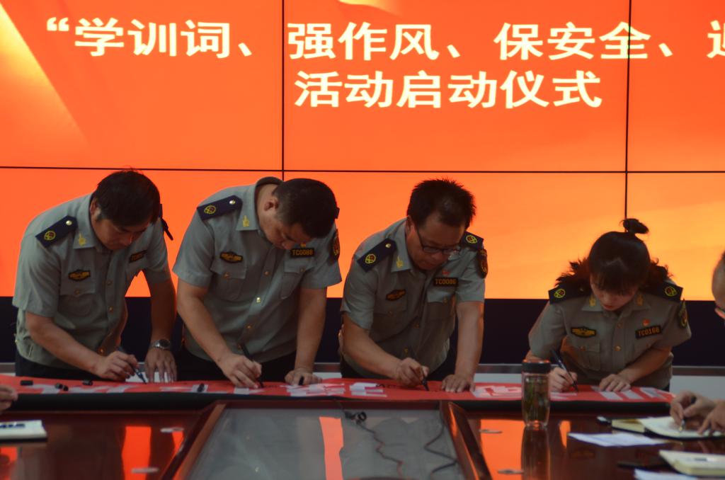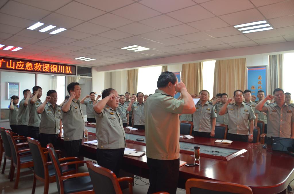 會(huì)議首先傳達(dá)國(guó)家安全生產(chǎn)應(yīng)急救援中心《關(guān)于開展“學(xué)訓(xùn)詞、強(qiáng)作風(fēng)、保安全、迎大慶”活動(dòng)的通知》,宣讀大隊(duì)活動(dòng)實(shí)施方案,細(xì)化節(jié)點(diǎn),明確要求,落實(shí)責(zé)任。隨后,全體與會(huì)同志起立面向隊(duì)旗進(jìn)行了莊嚴(yán)宣誓,井進(jìn)行了活動(dòng)簽名儀式。