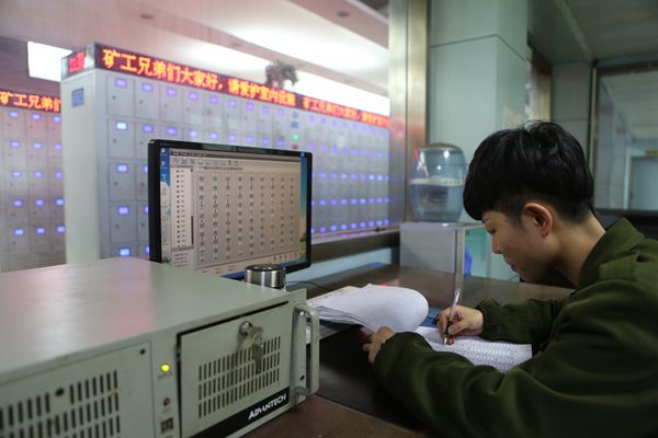 該礦礦燈自救器超市,作為礦區(qū)女工的窗口,不論何時,他們的大門總是敞開著的。崔倩作為90后的一代,身上沒有那種僑情,精致的短發(fā),給人一種精干利落的感覺,留崗的她,像往常一樣接班上崗、更換做衣、開始干活,與以往不同的是只有她一個人守護(hù)著偌大的礦燈自救器超市,打掃完衛(wèi)生,她就在逐臺查看機(jī)柜的礦燈、自救器充電、完好情況,并認(rèn)真核對當(dāng)班入井人員情況。