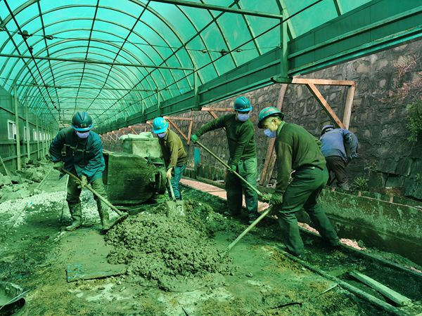 在施工過程中,該礦運輸區(qū)三班職工全力以赴、密切配合,積極領(lǐng)料、和灰、固定擋板,對回車線路的排水溝進行清挖疏通。在領(lǐng)料間隙,職工穿著膠靴站在水溝中,利用木板、自制擋板衡量、固定出需要修葺的水溝位置。防汛物資運到原煤卸載點后,大家用廢舊皮子在軌道上鋪成一個臨時的和灰點,抓緊和灰、澆筑,再用鐵锨、膩子板,將所砌的水溝修理平整,然后將之前砌好后凝固的水溝擋板取下來,繼續(xù)往前固定、修葺,就這樣不停的重復著,一米一米的搶時間、趕進度、提質(zhì)量,為原煤順利拉運提供可靠保障,確保雨季到來之際運輸線路暢通無阻。