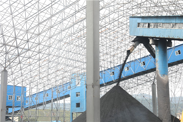 10月1日,氣溫驟降。儲煤場封閉項目施工現(xiàn)場,兩名施工人員“飛檐走壁”搭接支撐鋼梁。煤場內(nèi),鏟車轟鳴,“烏金”傾瀉而出。