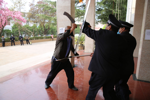 上午9時,一名持刀“暴徒”欲強行突破該中心大門進入辦公樓內(nèi)部實施破壞,被安保人員發(fā)現(xiàn)后立即阻止并向轄區(qū)派出所報警。接到報警,轄區(qū)派出所民警迅速出警,前往該中心辦公樓大門進行支援。數(shù)分鐘后,轄區(qū)派出所民警全副武裝趕赴現(xiàn)場和安保人員合力將持刀“暴徒”擒獲。 演練歷時1小時左右,共出動車輛1輛,參演人數(shù)10余人,各小組分工明確、行動迅速、配合默契、處置得當(dāng),達到了演練預(yù)期效果。