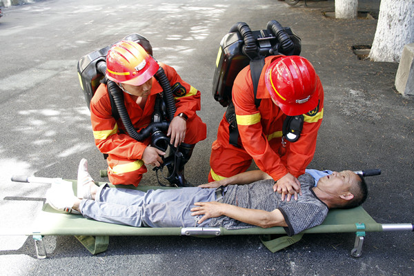 隨著單身公寓一名服務(wù)員的報警,單身公寓二樓15號房間發(fā)現(xiàn)煙霧,疑是著火,此時負責單身公寓負責人接警后,迅速向單位值班人員匯報,同時向礦調(diào)度室匯報,請盡快安排救護人員到單身公寓二樓救援,現(xiàn)場救援中,業(yè)務(wù)科室人員首先切斷電源,救護隊員在二樓搜救出五名職工,并攙扶五名施救人員,用毛巾捂著口鼻,迅速撤離至單身公寓外安全區(qū)域,一名救護隊員及時撲滅火源,一同撤離。此時,單身公寓值班人員發(fā)現(xiàn)現(xiàn)場一名職工未及時撤離,兩名救護隊員迅速在單身公寓二樓及時發(fā)現(xiàn)一名職工,緊急攙扶一樓安全區(qū)域進行心肺復(fù)蘇,一分鐘后,該職工蘇醒,立即送往醫(yī)院救治。