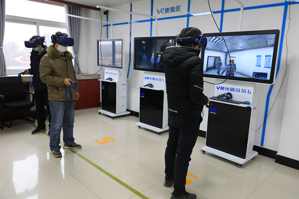 理論課堂上,業(yè)務(wù)科室技術(shù)人員進(jìn)行授課,重點(diǎn)結(jié)合工作實(shí)際與學(xué)員進(jìn)行互動(dòng)答疑,提升理論知識(shí)水平,并進(jìn)行閉卷考試,檢驗(yàn)學(xué)習(xí)成效。 在實(shí)操中,學(xué)員走進(jìn)礦井VR教學(xué)中心,通過為本次培訓(xùn)制作的教材,利用虛擬現(xiàn)實(shí)技術(shù),讓大家“身臨其境”感受各類災(zāi)害及生產(chǎn)安全事故的發(fā)生過程和危害性,通過輸入設(shè)備與場(chǎng)景交互,系統(tǒng)對(duì)人的行為和工作方案做出對(duì)應(yīng)的反饋,檢驗(yàn)應(yīng)急避險(xiǎn)、災(zāi)情處置知識(shí)技能和工作水平,系統(tǒng)性、可循環(huán)比照工作方案,提高制定實(shí)施災(zāi)害治理方案的全面性和針對(duì)性。