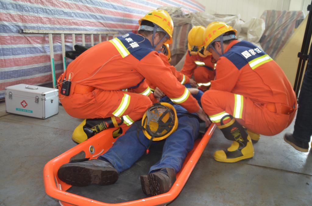 上午10時整,隨著各參演隊(duì)伍到達(dá)演練地點(diǎn),演練正式拉開帷幕,演練設(shè)置有通風(fēng)供氧、氣體檢測、心肺復(fù)蘇、急救包扎等科目。在救援演練現(xiàn)場,通風(fēng)組首先安裝風(fēng)機(jī)并使用手提式通風(fēng)機(jī)持續(xù)向有限空間內(nèi)輸送新鮮空氣;氣體檢測組使用泵吸式多種氣體檢測儀對地坑內(nèi)氣體含量進(jìn)行實(shí)時檢測,報告氣體變化情況;救援組迅速搭建救援三腳架,在對事發(fā)過程和地坑內(nèi)環(huán)境了解確認(rèn)后,攜帶裝備入坑搜救。在坑口不遠(yuǎn)處發(fā)現(xiàn)2名中毒昏迷人員后,救援人員將其運(yùn)送至地面,現(xiàn)場對2名中毒窒息工人采用自動蘇生器進(jìn)行搶救,并對1名骨折職工進(jìn)行包扎處理,在恢復(fù)正常體征后,迅速送醫(yī)治療。