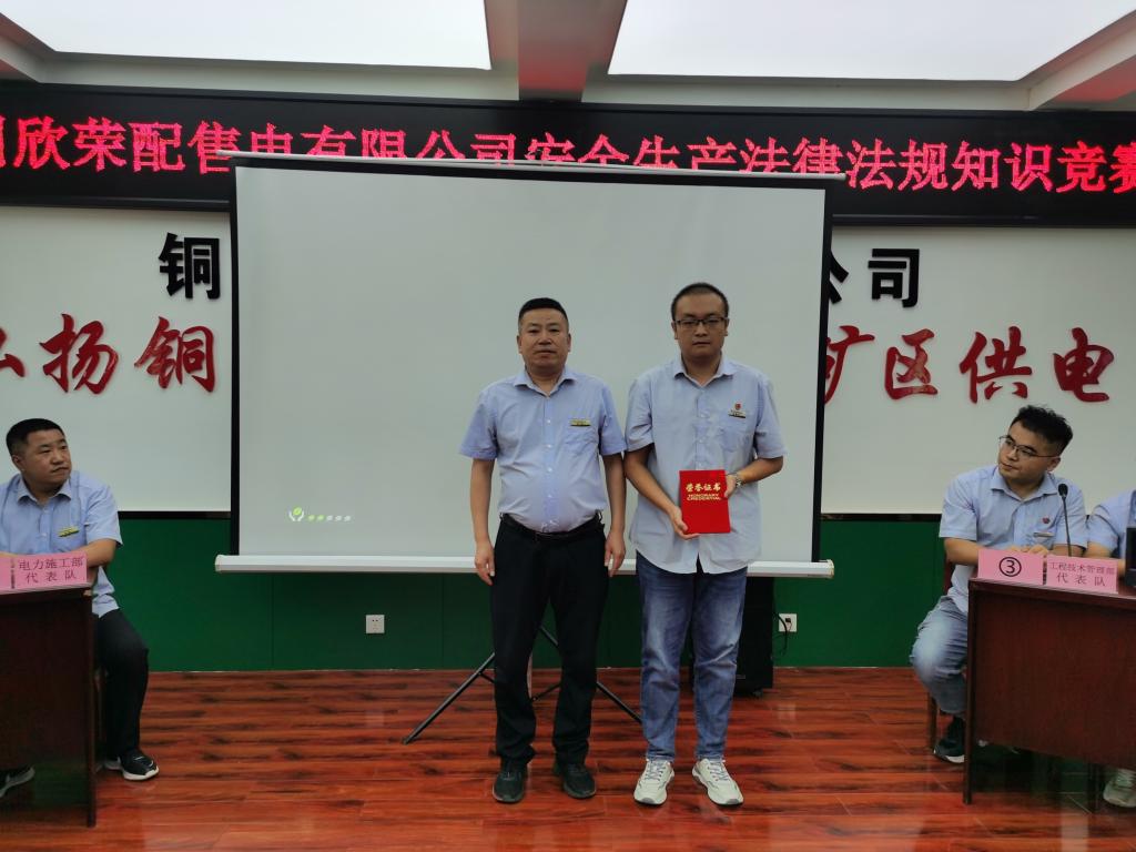 此次競賽包括必答題、搶答題和風(fēng)險(xiǎn)題三個(gè)環(huán)節(jié),緊扣安全生產(chǎn)法律法規(guī)、電力行業(yè)安全生產(chǎn)基礎(chǔ)知識(shí)等內(nèi)容。最終,經(jīng)過激烈角逐,所屬電力調(diào)度中心代表隊(duì)取得冠軍,市場營銷部取得二等獎(jiǎng)、電力施工部代表隊(duì)獲得三等獎(jiǎng)。同時(shí),來自電力施工部的胥哲東同志取得了“最佳個(gè)人”獎(jiǎng)。在熱烈的掌聲中,銅川礦區(qū)工會(huì)和公司領(lǐng)導(dǎo)分別向現(xiàn)場獲獎(jiǎng)代表隊(duì)頒發(fā)了證書,以資鼓勵(lì)。