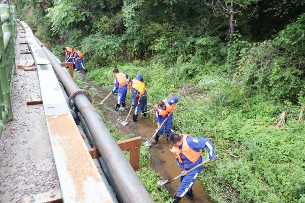 “報告調(diào)度指揮中心,污水處理站后河道山體部分垮塌,造成河道被堵,河水上漲,請指示。”下午15時,正在礦區(qū)河道巡視的雨季“三防”小組工作人員通過電話向調(diào)度指揮中心調(diào)度員匯報礦區(qū)河道受災(zāi)情況。