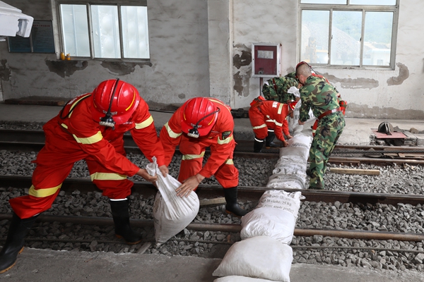 汛情就是命令。10點05分,救護隊、機關(guān)“三防”搶險突擊隊等應(yīng)急救援隊伍分別在一號副斜井井口、二號副斜井井口,爭分奪秒用沙袋堆砌防洪堤,全面排查礦井周邊排水設(shè)施和防洪物資儲備情況,安排專人負責動態(tài)巡查,有效防范洪水倒灌至井下區(qū)域。