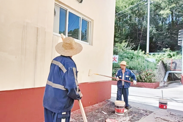 該礦在常態(tài)化安全大檢查中,發(fā)現(xiàn)地面風(fēng)井機(jī)房部分墻面經(jīng)過風(fēng)吹雨淋等歲月的洗禮,已經(jīng)淡褪了原來光鮮亮麗的容顏,并且?guī)戆踩[患。因此決定對(duì)風(fēng)井機(jī)房1#2#3#變電所、水處理室外墻墻面進(jìn)行重新粉刷黃色墻面漆,相關(guān)工程技術(shù)人員進(jìn)行了實(shí)地測量和勘查,并制訂了詳細(xì)的施工方案,確保高質(zhì)量高標(biāo)準(zhǔn)完成此項(xiàng)任務(wù)。