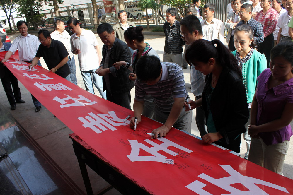 在6月1日的“安全生產(chǎn)月”活動(dòng)啟動(dòng)儀式上,公司黨政領(lǐng)導(dǎo)號(hào)召公司廣大職工加強(qiáng)安全知識(shí)學(xué)習(xí),增強(qiáng)自我保安意識(shí),自覺(jué)遵章守紀(jì);要求各級(jí)組織加強(qiáng)安全管理,落實(shí)主體責(zé)任,積極投入到“安全生產(chǎn)月”活動(dòng)中。啟動(dòng)令發(fā)布后,公司黨政領(lǐng)導(dǎo)與全體干部職工,一起在寫有“安全責(zé)任,重在落實(shí)”的條幅上鄭重簽名,與安全簽約。