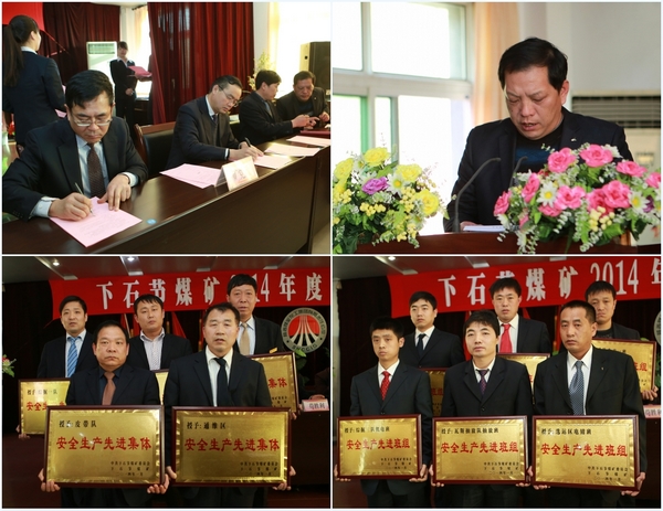 會議由該礦黨委副書記、工會主席茍勝利主持。副礦長焦守讓詳細傳達了公司2014年安全、通風工作會議精神,對公司領導的重要講話精神及公司2014年新的安全目標、措施、任務進行了重點傳達。副礦長兼安監(jiān)處長王新堂在會上作了題為《突出預防為主 創(chuàng)新安全管理 為推動礦井安全工作再上新臺階而努力奮斗》的安全工作報告,報告簡要回顧了2013年的安全工作,提出了存在問題,明確了新一年安全工作的指導思想、總體思路和工作目標,從固化零理念、抓好過程管理、突出超前預防治理、加強隱患治理和“三違”治理工作、抓好礦井安全監(jiān)督檢查工作和強化責任落實等六個方面安排部署了2014年安全工作。安監(jiān)處主任工程師邵智鋒對《2014年安全生產(chǎn)獎罰實施辦法》和《實行全員安全風險抵押金規(guī)定》的修改部分進行了說明。副礦長趙永勝對2014年“一通三防”工作進行了安排。接著,副礦長馬春平宣讀了《關于表彰2013年度安全生產(chǎn)先進集體和先進個人的決定》,在歡快的樂曲聲中礦黨政領導為獲得安全生產(chǎn)的先進集體代表頒發(fā)了獎牌。