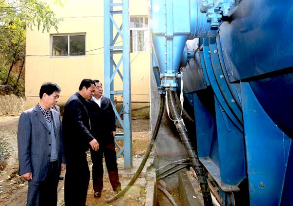 在二號風(fēng)井,礦長郭全營、黨委書記李新中等人對風(fēng)機主扇運行情況進行檢查,并抽查了工作人員的上崗及業(yè)務(wù)知識掌握情況?!澳銈冋莆罩V井運行的“呼吸機”,責(zé)任重大??!” 看到工作人員認(rèn)真記錄著監(jiān)控數(shù)據(jù)變化,礦領(lǐng)導(dǎo)這樣囑咐。在電控室,看到纜線沒有及時入溝,郭全營、李新中隨即叮囑“要抓緊處理,不要留下隱患”。在風(fēng)機主體旁,看到下部有積水,郭全營說“查清原因,不能有半點疏忽”??吹嚼鋮s塔管路改造后,可以循環(huán)利用水來對壓風(fēng)機冷卻降溫,李新中高興地說“要總結(jié)成果,大力推廣”。