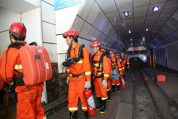 9時整,模擬演練正式開始。在模擬演練中,井下傳來消息礦皮帶下山機頭發(fā)生火災(zāi),產(chǎn)生明火并伴有大量煙霧,災(zāi)害威脅著井下作業(yè)人員的生命安全,皮帶司機發(fā)現(xiàn)火情后,立即向選運隊跟班干部和調(diào)度室匯報了這一信息,請求救援防災(zāi)。演練指揮中心接到火情報告后后,立即啟動搶險救援應(yīng)急預(yù)案,迅速成立救援指揮部,制定滅火方案,通訊、救護、醫(yī)療、物資保障等力量也在第一時間快速集結(jié)到位迅疾投入救援。救援指揮部同時立即通知井下3個區(qū)域停電,命令跟班礦領(lǐng)導(dǎo)第一時間組織好火災(zāi)搶險工作、同時按照預(yù)先制定的撤離路線,除參與救援人員外,其他人員迅速撤離工作現(xiàn)場,選運隊跟班干部接到指令后,立即在軌道充電硐室電話組織臨時救災(zāi)人員和救災(zāi)物資,沿軌道巷繞至事故點上風(fēng)側(cè)組織滅火,由于事故點火勢較大,井下救援人員一時之間無法有效控制災(zāi)情,請求快速增援。在救災(zāi)指揮部的精心指揮下,參與救援的救護隊員及運送物資人員火速前往事故點增援,地面救援人員入井后在皮帶大巷快速設(shè)立井下基站,并在事故點布置了一道控風(fēng)臨時風(fēng)障、安裝了一趟水管、使用滅火器進行滅火,火災(zāi)得到快速控制,隨后在緊張救援下熄滅,救護隊員同時安排現(xiàn)場留守及氣體監(jiān)測人員觀測后續(xù)情況,經(jīng)檢測井下瓦斯、一氧化碳、二氧化碳、氧氣、溫度、風(fēng)量、風(fēng)流方向恢復(fù)正常,井下人員疏散和撤離工作也順利進行,10時50分現(xiàn)場滅火工作結(jié)束,危險情況得到控制,可能導(dǎo)致次生、衍生事故的隱患得到消除,并避免了人員和財產(chǎn)損失。