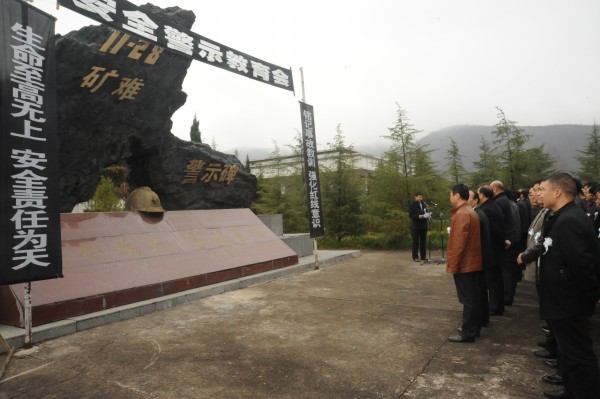 在警示碑前,銅川監(jiān)察分局、銅川市煤炭局、延安市煤炭局、銅川礦業(yè)公司、黃陵礦業(yè)公司領(lǐng)導(dǎo)向遇難礦工敬獻(xiàn)了花圈,全體人員向遇難礦工集體默哀三分鐘。