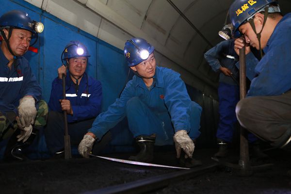 2013年8月,礦井一次采全高大型綜采設(shè)備搬家倒面,重達(dá)四十余噸的綜采支架等大型綜采設(shè)備的安全拉運給運輸軌道提出了更嚴(yán)的標(biāo)準(zhǔn)的要求。沒有經(jīng)驗,就在干中學(xué),在學(xué)中干。他和工友們主動放棄休假,堅守崗位,嚴(yán)格軌道鋪設(shè)、安裝道岔安全施工作業(yè)標(biāo)準(zhǔn),加強日常維護(hù)的同時快速處理緊急和突發(fā)狀況。無論什么時候,只要工作需要,就一定有他們揮汗如雨的繁忙身影,即使任務(wù)再難再重,全班也沒有一個人叫苦叫累,大家的心中只有一個共同的目標(biāo),那就是堅決不能因為運輸環(huán)節(jié)問題影響礦生產(chǎn)接續(xù)的正常進(jìn)行。40多天的毅然堅守,礦井生產(chǎn)接續(xù)過程中沒有出現(xiàn)一起因軌道質(zhì)量造成的安全事故。從2013年到2016年連續(xù)四年,1500多個日日夜夜的安全運輸戰(zhàn)績背后,是苗長珍和工友們始終如一的堅守、揮汗如雨的的奮戰(zhàn)得來的結(jié)果。