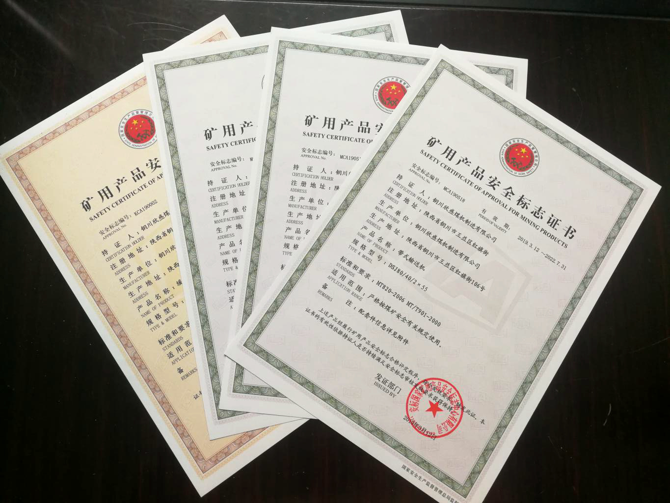 近日,從國家礦用產(chǎn)品安全標(biāo)志辦公室傳來捷報,由欣盛煤機(jī)制造公司生產(chǎn)的兩大系列,四種型號的礦用產(chǎn)品同時取得國家“礦用產(chǎn)品安全標(biāo)志證書”。此證書由國家安全生產(chǎn)上海礦用設(shè)備檢測檢驗(yàn)中心審核,國家礦用產(chǎn)品安全標(biāo)志辦公室頒發(fā),標(biāo)志著該公司生產(chǎn)的?108、?133、?159緩沖托輥及DSJ80/40/2×55可伸縮帶式輸送機(jī)在質(zhì)量和安全方面得到了國家的認(rèn)可。