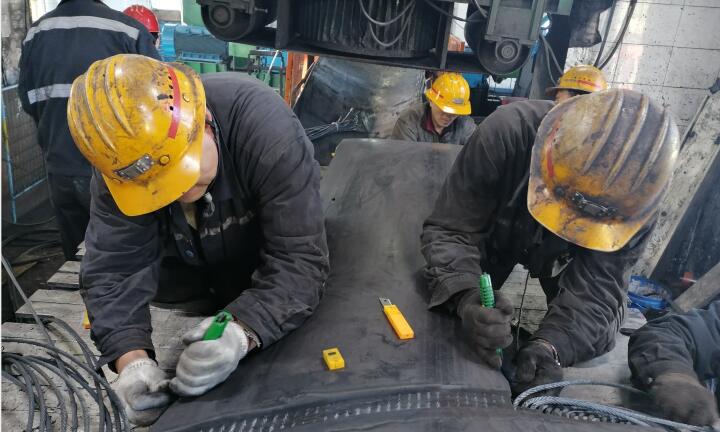 主井大帶皮帶全長2210米,由于皮帶長期運(yùn)行導(dǎo)致皮帶磨損較為嚴(yán)重,再加上皮帶背面出現(xiàn)多處傷口,給皮帶的安全運(yùn)行帶來隱患,此次大帶硫化工作由項(xiàng)目部運(yùn)轉(zhuǎn)隊(duì)組織施工,檢修期間,該隊(duì)在主井大帶機(jī)頭位置用鋼梁搭建硫化平臺,通過操作臺將待檢修部位皮帶運(yùn)行至硫化平臺處,割帶剝離皮帶鋼絲繩,并對其進(jìn)行清洗和抹膠,再鋪上新膠固定打壓碾平,最后經(jīng)人力將硫化好的皮帶拉運(yùn)至井底190米處進(jìn)行合帶對接并進(jìn)行調(diào)試,完成大帶硫化工序。期間,該隊(duì)共對主井大帶硫化三處皮帶接頭,更換200米膠帶,保證了設(shè)備安全運(yùn)行。