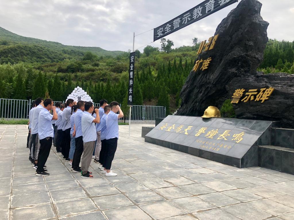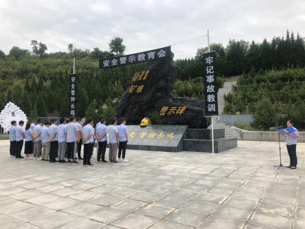 全體人員來到礦難警示碑前,向遇難礦工敬獻(xiàn)花圈,全體人員默然肅立,懷著沉重的心情面向警示紀(jì)念碑默哀,表達(dá)對(duì)遇難礦工深切的哀思,并在警示碑前進(jìn)行了莊嚴(yán)的安全宣誓。隨后,全體人員繞紀(jì)念碑一周,緬懷紀(jì)念遇難礦工,汲取安全事故教訓(xùn)。