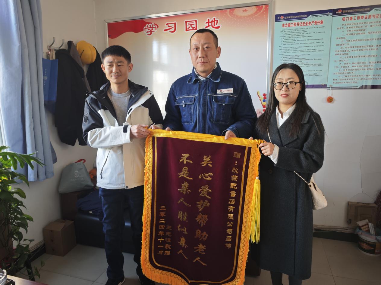 由于走時沒有留下姓名,傷者家屬對好心人念念不忘,通過各種方式尋找呂偉,26日,傷者家屬來到欣榮公司,為職工呂偉送上“ 關(guān)心愛護幫助老人 不是親人勝似親人”的錦旗,以表達感激之情。