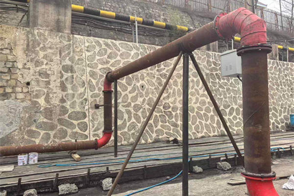該礦將提升排水系統(tǒng)能力作為安全度汛的重要保障,在每年“清明”“谷雨”前后,制度化組織基層區(qū)隊(duì)實(shí)施排水系統(tǒng)維護(hù)工作,巡查檢修排水設(shè)備設(shè)施,進(jìn)行排水溝清淤加固。結(jié)合巡查清單,礦井通過(guò)研究討論確定了副井口排水管路“龍門(mén)”改造方案。機(jī)電車間根據(jù)改造設(shè)計(jì)和安全生產(chǎn)標(biāo)準(zhǔn)化要求,從區(qū)域管路重新布置到“龍門(mén)”加工、安裝、連接等環(huán)節(jié),嚴(yán)格制定施工計(jì)劃,明確工藝工序工期和質(zhì)量標(biāo)準(zhǔn)。先用擋板擋住2號(hào)排水口,使用9根直徑325毫米的回收舊鋼管進(jìn)行再加工再利用作為排水主管路,連接1號(hào)排水口,加工5個(gè)彎頭并使用4根管子作為立管,通過(guò)頂頭焊接包卡的方式,形成一個(gè)高4米、寬7米的“龍門(mén)”。