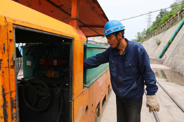 鏡頭二:機(jī)加車間室外緊鄰地面軌道運(yùn)輸線,機(jī)車頭觸摸燙手,駕駛座上帶來的熱度“烤”驗(yàn)也不一般。運(yùn)輸區(qū)機(jī)車司機(jī)劉耀峰等待著機(jī)加材料裝車的空隙,拿出了“五感”診斷法的絕活,聽設(shè)備異響、看儀表波動(dòng)、聞絕緣異味、測(cè)運(yùn)行數(shù)據(jù),他把手錘、扳手工具作為“聽診器”,細(xì)致入微排查故障?!奥犜\器今天可能有35度,燙耳朵呢”,風(fēng)趣的話語讓運(yùn)輸班職工粲然一笑,大家走進(jìn)車間幫忙裝貨,劉耀峰手握“方向盤”駕駛機(jī)車駛向目的地。