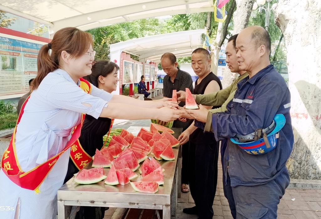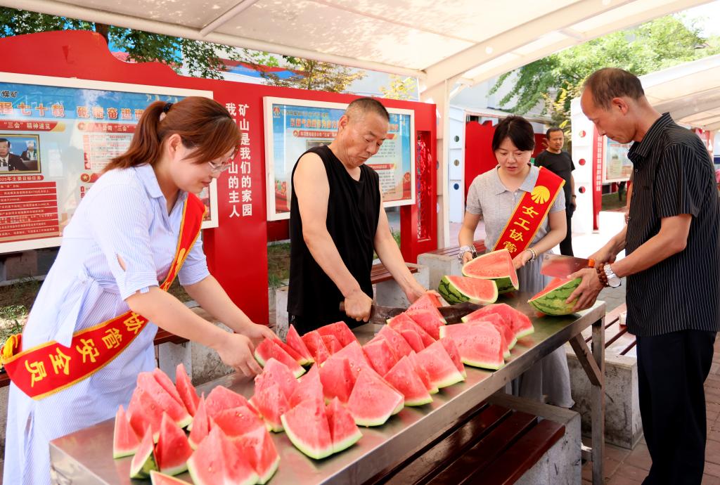 活動(dòng)現(xiàn)場(chǎng),該礦工會(huì)將精心選購(gòu)的大西瓜提前切好,當(dāng)上下班職工們陸續(xù)走來(lái),女工協(xié)管員們立刻迎上去,把清甜多汁的西瓜遞到礦工手中:“師傅,您辛苦了!吃塊西瓜解解暑!”同時(shí)圍繞夏季防暑、作業(yè)安全,用嘮家常式的話語(yǔ),提醒職工別因天熱疏忽安全,要做好防護(hù)、規(guī)范操作。礦工們邊啃瓜、邊點(diǎn)頭,紛紛表示為了企業(yè)的安全發(fā)展和家庭的幸福美滿,牢記囑咐,按章作業(yè)。