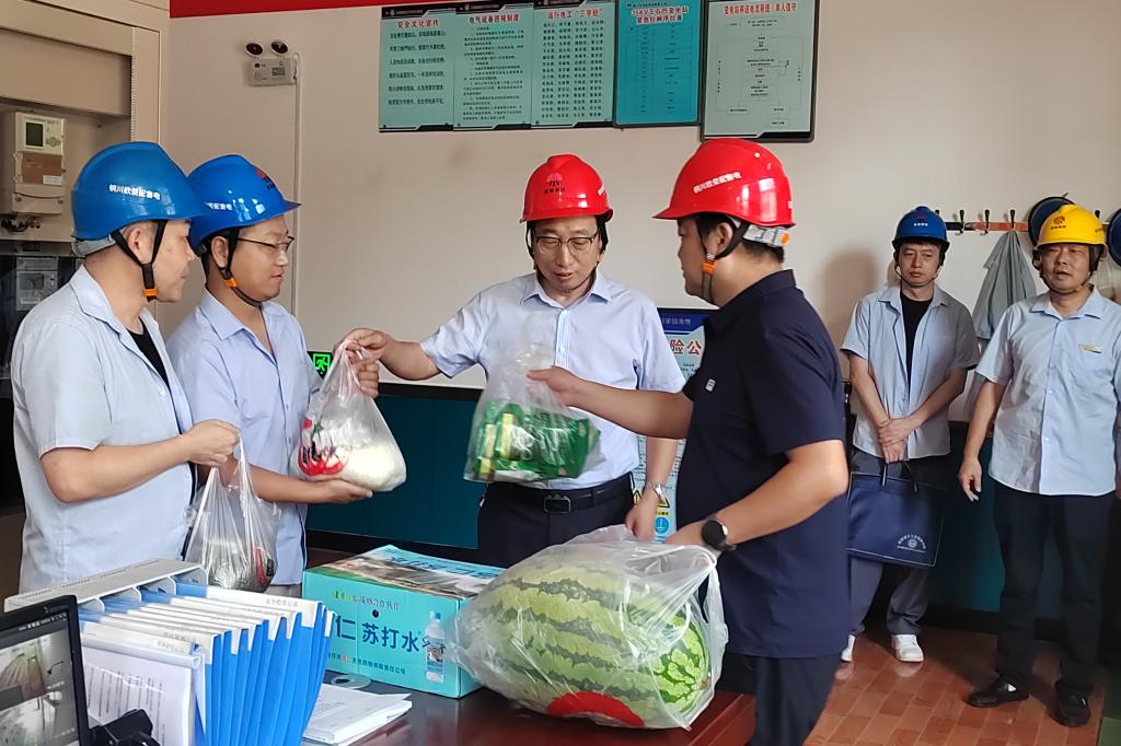 在嚴謹細致的檢查間隙,檢查組親切慰問了奮戰(zhàn)在一線的運維和檢修人員,親手將清涼飲品、防暑藥品及解暑水果等慰問品送到職工手中,并反復(fù)叮囑大家務(wù)必注意勞逸結(jié)合,做好高溫防護,確保自身安全健康。