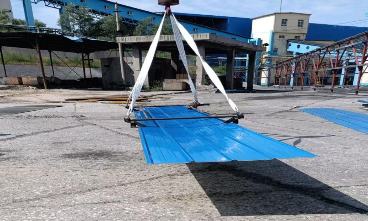 在日常起吊作業(yè)中,彩鋼瓦及3毫米以下薄板,因材質(zhì)單薄、剛性較弱,一直是吊裝作業(yè)的難題。以往的起吊方式,難以控制板材受力,容易導(dǎo)致板材在吊裝過程中發(fā)生彎折、變形,造成材料損壞。同時,由于板材變形造成捆扎松動后引起晃動,也給現(xiàn)場作業(yè)帶來安全隱患。