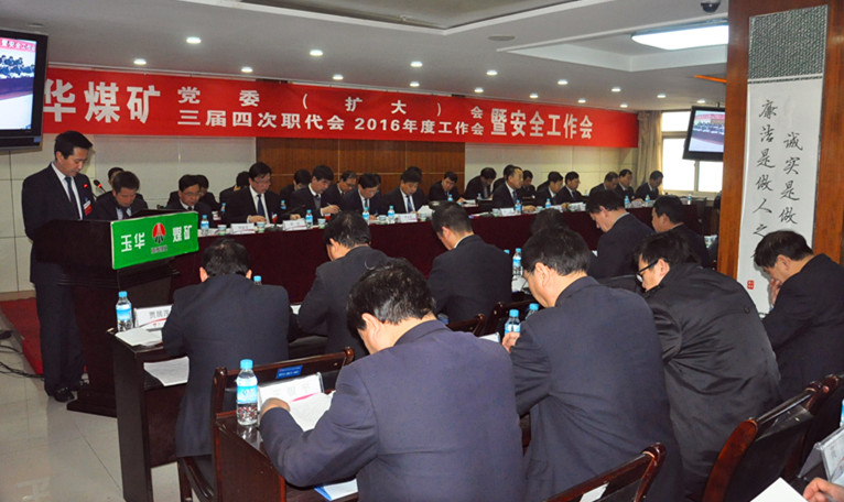 1月29日,玉華礦召開黨委(擴大)會、三屆四次職代會、2016年度工作會暨安全工作會。礦副總以上領(lǐng)導(dǎo)及職工代表共129人參加了會議。
