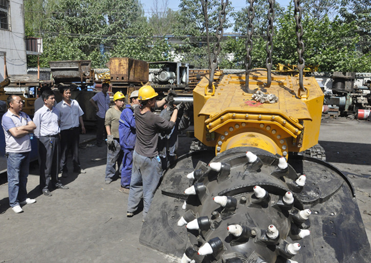 為進(jìn)一步提升2405高抽巷推進(jìn)進(jìn)度,有效緩解礦井采掘接續(xù)緊張局面,在礦黨政領(lǐng)導(dǎo)周密組織協(xié)調(diào)下,一臺(tái)EBZ-160型綜掘機(jī)完成地面組裝調(diào)試后,即將投入2405(3#)高抽巷掘進(jìn)生產(chǎn)使用。6月10日至11日,在分管機(jī)電礦級(jí)領(lǐng)導(dǎo)的現(xiàn)場(chǎng)指揮下,動(dòng)力、生產(chǎn)等科室與掘四隊(duì)、機(jī)電車間組織技術(shù)人員,頂烈日揮汗如雨的進(jìn)行著綜掘機(jī)地面組裝工作。經(jīng)過30多個(gè)小時(shí)的奮戰(zhàn),11日早10時(shí),綜掘機(jī)完成初步組裝,經(jīng)過檢查確認(rèn)安全后,隨著一聲試運(yùn)行的令下,截割頭與鏟板星輪、刮板輸送機(jī)實(shí)現(xiàn)順暢運(yùn)轉(zhuǎn)。隨后,按照試運(yùn)行步驟,綜掘機(jī)在場(chǎng)地內(nèi)行走自如,順利完成了試運(yùn)行各項(xiàng)檢測(cè)工作。