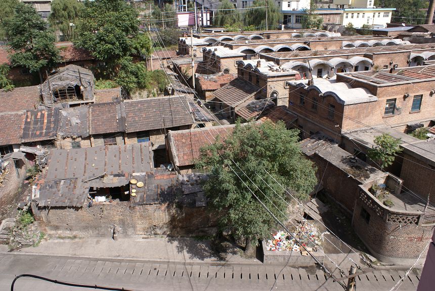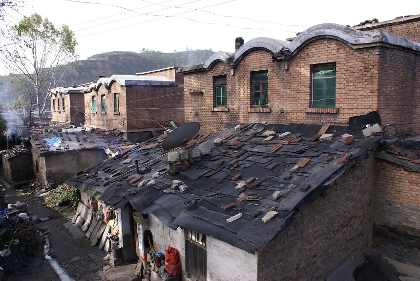 圖為金華山煤礦紅土住宅區(qū)的新舊房屋對照