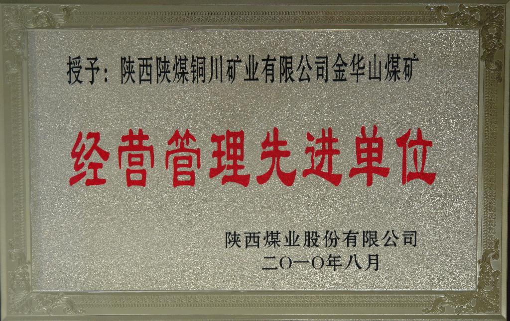 2010年8月6日,在陜西陜煤股份有限公司召開的2010年經(jīng)營管理經(jīng)驗介紹暨分析評審會上,銅川礦業(yè)公司所屬下石節(jié)煤礦榮獲二等獎,金華山煤礦榮獲三等獎。