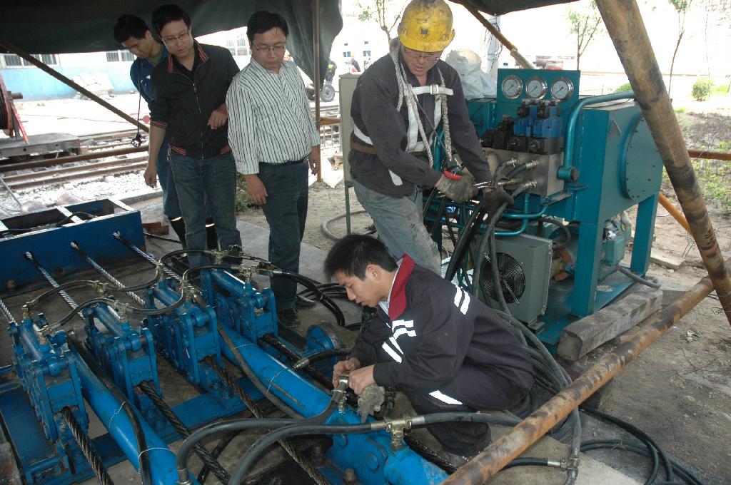 下午2點,在礦副井廣場舉行了副絞首繩更換和電控改造任務(wù)開工儀式,礦機電礦長馬銅生、機電副總郭全柱分別作了動員講話。礦總工程師雷鐵山指出,這次玉華礦拿出20天的時間進行檢修,從公司到礦都非常關(guān)注,副絞的兩大工程時間緊、任務(wù)重,希望機電車間全體干部職工在確保安全施工的前提下,勁朝一處使、充分發(fā)揮大家的聰明才智,在工作中多向廠家技術(shù)員學習請教,保質(zhì)保量圓滿完成此次副絞首繩更換和電控改造任務(wù)。 在開工鞭炮的響聲中,每條530米長、直徑3.2厘米,總重近10噸的四條鋼絲繩、在機電車間干部職工的統(tǒng)一、科學指揮下,徐徐拉入副井,這也標志著玉華煤礦從投產(chǎn)至今的8年時間內(nèi),耗時最長的礦井檢修工作正式拉開了大幕。
