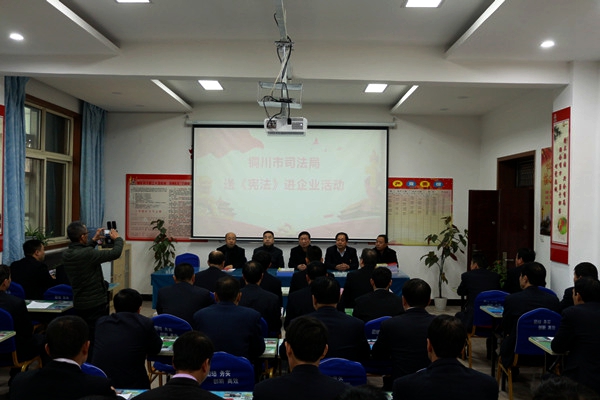 12月14日上午,銅川市委依法治市工作領(lǐng)導(dǎo)小組辦公室主任袁虎迪、副主任寇永軍等3人深入玉華礦,開展“送法律進(jìn)企業(yè)”活動(dòng)。