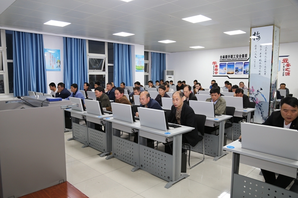 進入該礦安全培訓考試中心,整潔的環(huán)境、全新的設(shè)施,墻面安裝有“學考結(jié)合、立安之源”安全文化宣傳圖版,懸掛著《計算機機房管理制度》《培訓學員考勤管理制度》《學員守則》《考場紀律秩序》等制度,整個考試中心一次就可容納60人集中考試。