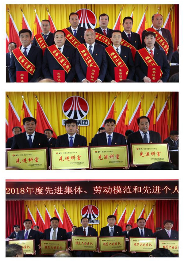 該礦黨委負責(zé)人、礦長王體文在會上講話時指出,2018年,陳家山礦在公司黨政的堅強領(lǐng)導(dǎo)下,各級組織和廣大黨員干部職工堅持以黨的十九大精神為指導(dǎo),深化黨建工作創(chuàng)新,以“四零”目標管理為統(tǒng)領(lǐng),緊扣追趕超越、提質(zhì)增效中心工作,團結(jié)進取、開拓創(chuàng)新,整體工作穩(wěn)步推進。概括起來就是“四新、兩高、一多、一提升”:“四新”:一是圓滿完成礦業(yè)公司規(guī)定的目標任務(wù),煤炭產(chǎn)銷量取得新突破;二是提前實現(xiàn)了三年“治虧創(chuàng)效”目標,完成了礦業(yè)公司考核利潤,經(jīng)營管理工作再創(chuàng)新佳績;三是率先在銅川礦區(qū)實施了矸石山三年水保綜合治理、儲煤場封閉、燃煤鍋爐“煤改氣”、污水處理廠設(shè)備更新改造,環(huán)保工作邁上了新臺階;四是著力推行了“黨建+5+x”工作模式,開展了黨建特色品牌創(chuàng)建,黨建引領(lǐng)力進一步增強,黨建創(chuàng)新有了新亮點?!皟筛摺保阂皇欠e極開展掘進競賽活動,強化掘進日常管理,嚴格按照中腰線組織施工,全年掘進進尺7111米。二是補繳了2018年企業(yè)年金及拖欠的住房公積金,為農(nóng)合工繳納了住房公積金,全年人均工資同比去年提高,職工滿意度高。“一多”: 2018年,我礦先后被陜西省煤炭生產(chǎn)安全監(jiān)督管理局、集團公司、礦業(yè)公司評為先進集體、先進單位等多項榮譽?!耙惶嵘保簩嵤┝恕八膯T兩長”“逢檢必考”“雙向考核”安全管理機制,開展了安全警示教育、安全生產(chǎn)月等一系列行之有效的安全活動,礦井整體安全管理能力持續(xù)提升。希望受到表彰的先進集體和先進個人要切實從以下七個方面發(fā)揮先鋒模范帶頭作用,影響帶動廣大職工積極投身到各項工作中。一是提高素質(zhì),爭做學(xué)習(xí)表率;二是嚴守紅線,爭做安全衛(wèi)士;三是立足本職,爭做生產(chǎn)標兵;四是嚴抓細管,爭做追趕超越先鋒;五是創(chuàng)新思路,爭做新時代黨建工作骨干;六是認真履職,爭做和諧美麗礦區(qū)建設(shè)典范;七是實干作為,爭做“轉(zhuǎn)作風(fēng)”的模范。